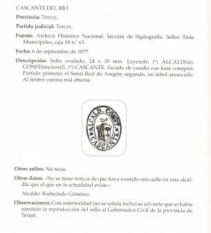Sello ovalado, 24x30 mm. Leyenda: ALCALD(ía) CONST(titucional) CASCANTE. Escudo de casulla con base conopial.