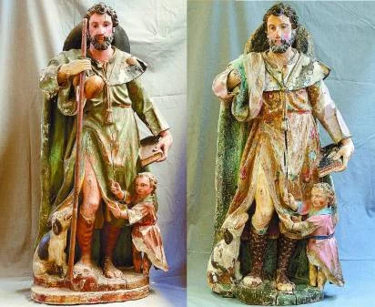 Salvando las distancias cronológicas, y forzando un símil sobre las peripecias ‘vitales’ de dos tallas escultóricas españolas, no deja de ser curioso el paralelismo que se puede componer entre la de San Roque ‘El Viejo’, encontrada en Pradoluengo hace tres años, y de cuya restauración ya se ha ocupado ampliamente este periódico, y la de otro San Roque, en este caso madrileño que, así mismo, se está recuperando de sus ‘heridas’ en la Escuela Superior de Conservación y Restauración de Bienes Culturales de Madrid.