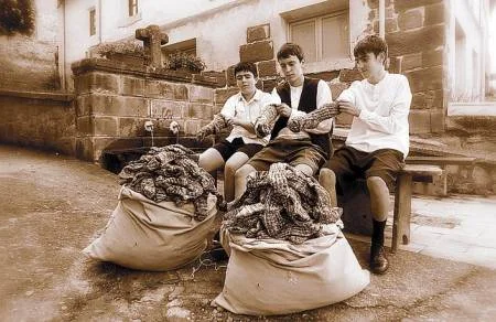 Cuando Antonio recuerda con total lucidez el sonido de los mazos de su batán, conocido como “de Blas” por llamarse así su padre, uno puede hacerse una idea cabal, de cómo a lo largo de tres kilómetros repletos de hilaturas, tintes y fábricas, las jornadas eran un continuo ir y venir de mulas cargadas de bayetas, de carros de lana empujados con vehemencia por obreros, de hilanderos afanados en sus “desmotadoras”, “diablos” y “batuares”, de tonadas alegres cantadas por calcetineras y boineras en las bancas de la calle. De aquel Pradoluengo, poco queda ya, aunque protagonistas de su desarrollo industrial, como este fabricante de 79 años, siguen siendo un lujo para quien quiera escuchar, abriendo con sus palabras, una ventana por la que asomarnos a un pasado genuino y de enorme vitalidad. Desde los 13 años hasta los 22, Antonio subió hasta Zubiaga para que el batán no parase. Y no por nada, sino porque si el batán paraba, la madera que formaba su estructura, podía agrietarse y echar por tierra muchos esfuerzos. Una cita de finales del siglo XIX, describe un trabajo duro, muy duro, que no había cambiado en siglos, y que continuaba siendo el mismo cuando era joven: “Para descansar, los operarios se acuestan sobre una de las piezas de bayeta en jerga y, a lo mejor del sueño, dejan este, aún cuando esté helando, para sacar las bayetas de la pila del batán, cargadas de agua fría”.