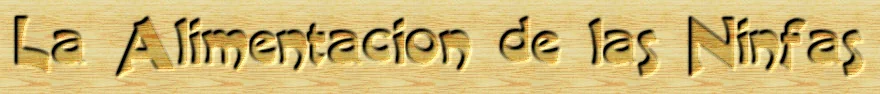 Las ninfas, al ser aves granívoras, no requieren una alimentación muy especial. El alpiste, la avena o el mijo constituyen la base de sus