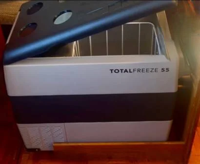 Ampliamos nuestro congelador, el que utilizabamos hasta ahora era unicamente el de la nevera y nos empezaba a quedar pequeño. Ahora sí tendremos espacio para guardar provisiones y todo lo que pescamos. Hemos hecho algunos cambios y aprovechado un armario corredero cerca de la cocina, lo hemos adecuado para instalar el congelador, nos a quedado integrado, práctico y funcional. Hemos escogido la marca "Total Freeze" y no podemos estar más contentos.